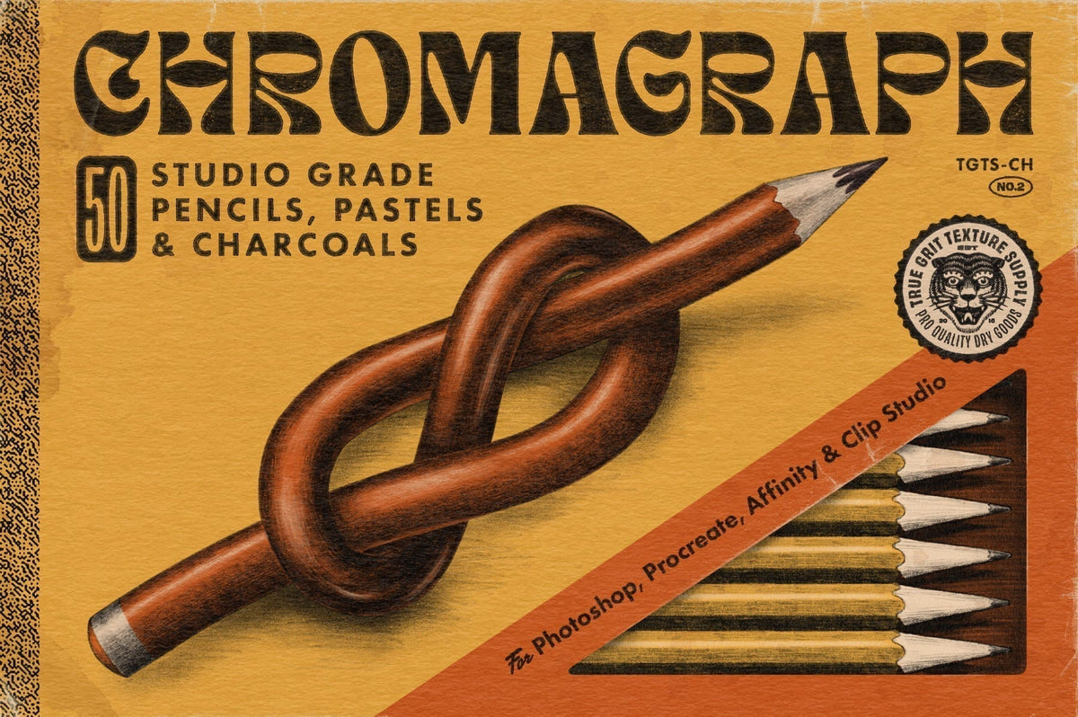 Chromagraph is the ultimate pencil, pastel and charcoal brush set for Photoshop, Procreate, Affinity and Clip Studio Paint.